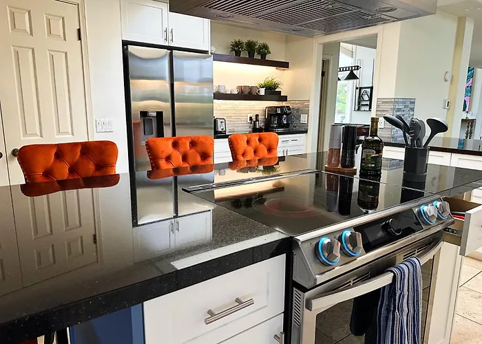 Situated nearly a 10-minute ride from Los Jilgueros Preserve, the 4-bedroom Entire Private 5-Br Villa W Pool, Spa, Nature, 3000 Sq Ft, Private Rental Fallbrook includes a private swimming pool, as well as a sauna to relax in. Featuring garden views, the accommodation invites guests to visit Fallbrook Art Center, located 3.7 km away.